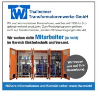 Wir sind ein mittelständisches Unternehmen im Bereich der Transformatorenherstellung. Erfahrung, Kreativität und Qualität sind die Ansprüche auf deren Grundlage seit vielen Jahrzehnten in Thalheim Ringkernstelltransformatoren gefertigt werden. Im Laufe der Jahre wurde daraus ein umfangreiches Sortiment der Gerätetechnik generiert, das eine ständige Erweiterung erfährt. Deshalb suchen wir zum nächstmöglichen Zeitpunkt einen